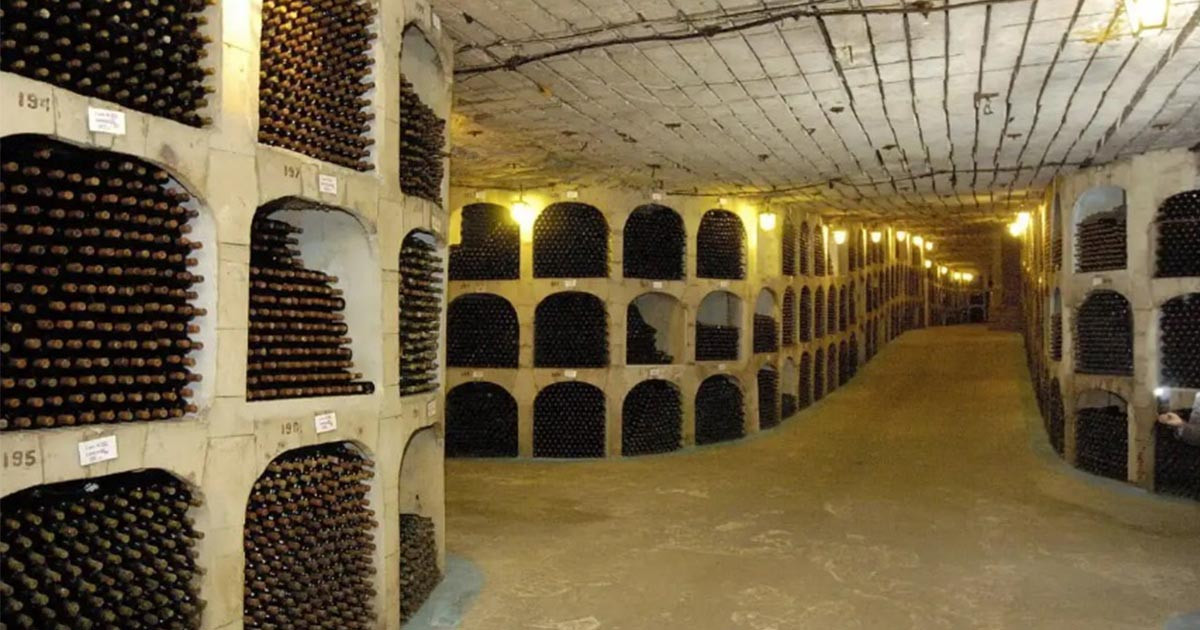 Oltre 200 km di cantine sotterranee da percorrere in auto con milioni di bottiglie conservate. Una vera e propria cittadina costruita nella roccia calcarea a 30/85 metri di profondità, con condizioni ideali per l’invecchiamento del vino: la temperatura si mantiene costante tutto l’anno intorno ai 12-14 gradi e l’umidità relativa oscilla tra l’85% e il 90%.